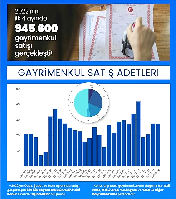 2022’nin ilk 4 ayında 945 .600 gayrimenkul satışı gerçekleşti!